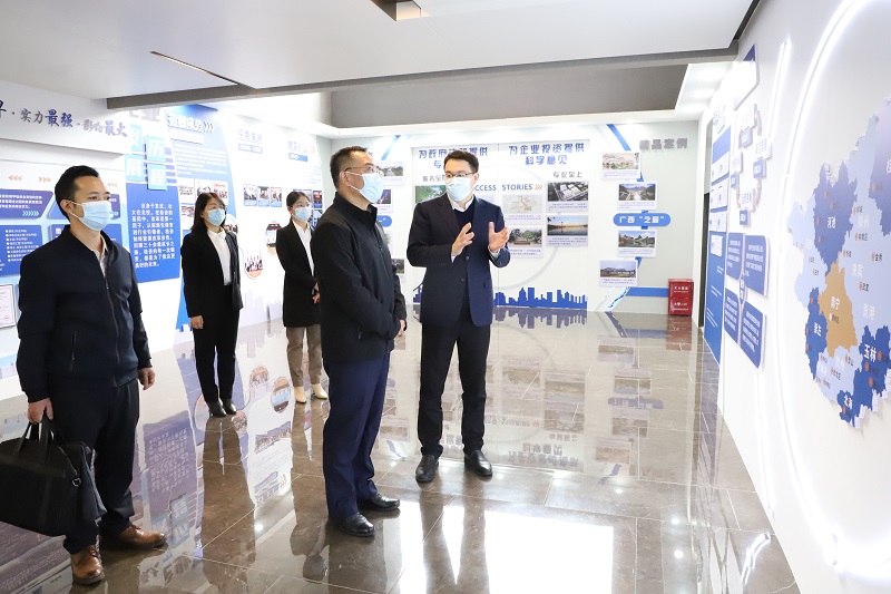 黃學(xué)軍一行還參觀了公司企業(yè)文化展示廳,詳細(xì)了解了公司業(yè)務(wù)板塊構(gòu)成、特色業(yè)務(wù)優(yōu)勢、重大項(xiàng)目成果及區(qū)內(nèi)市場布局等情況。