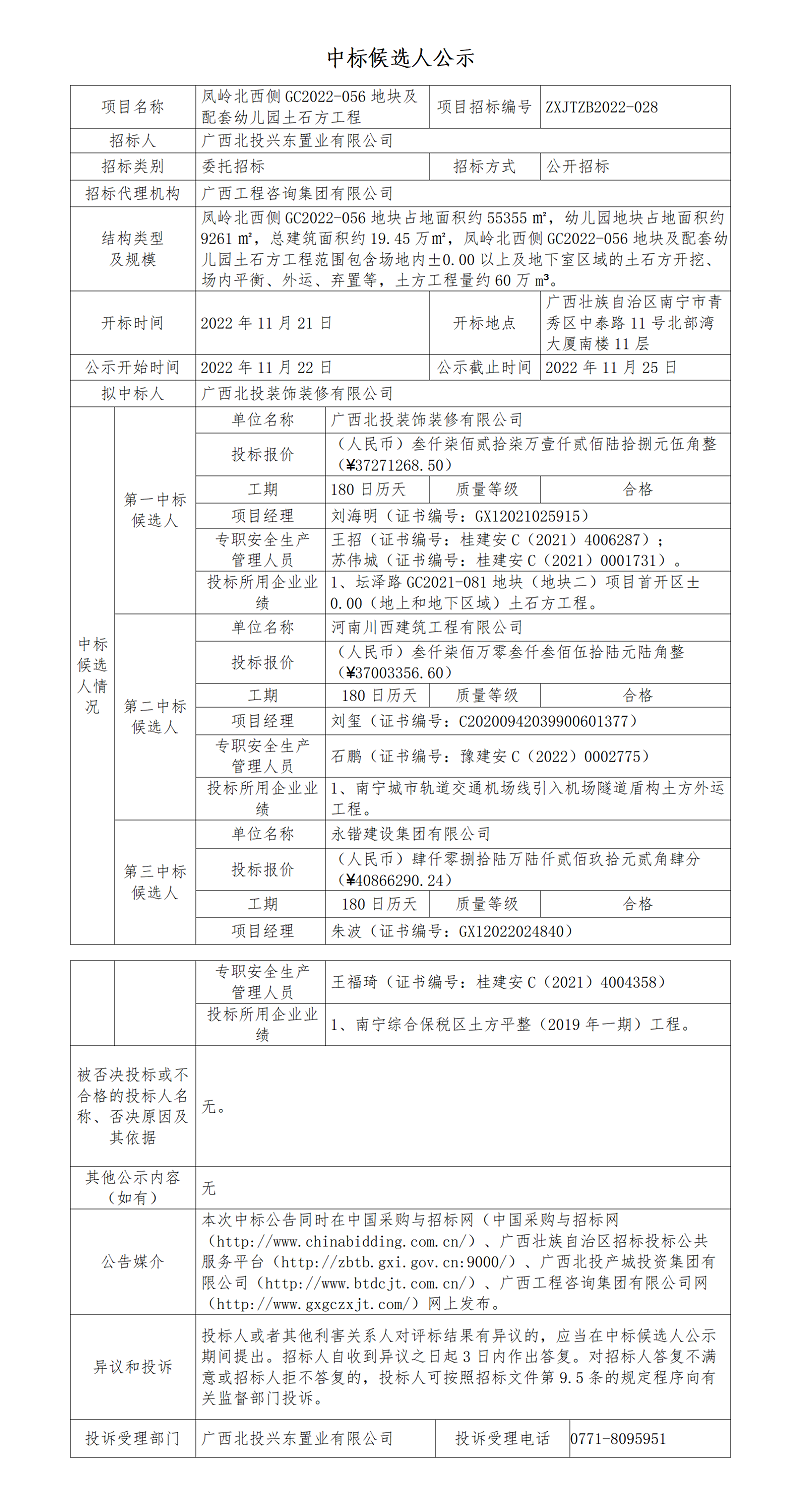 中標候選人公示